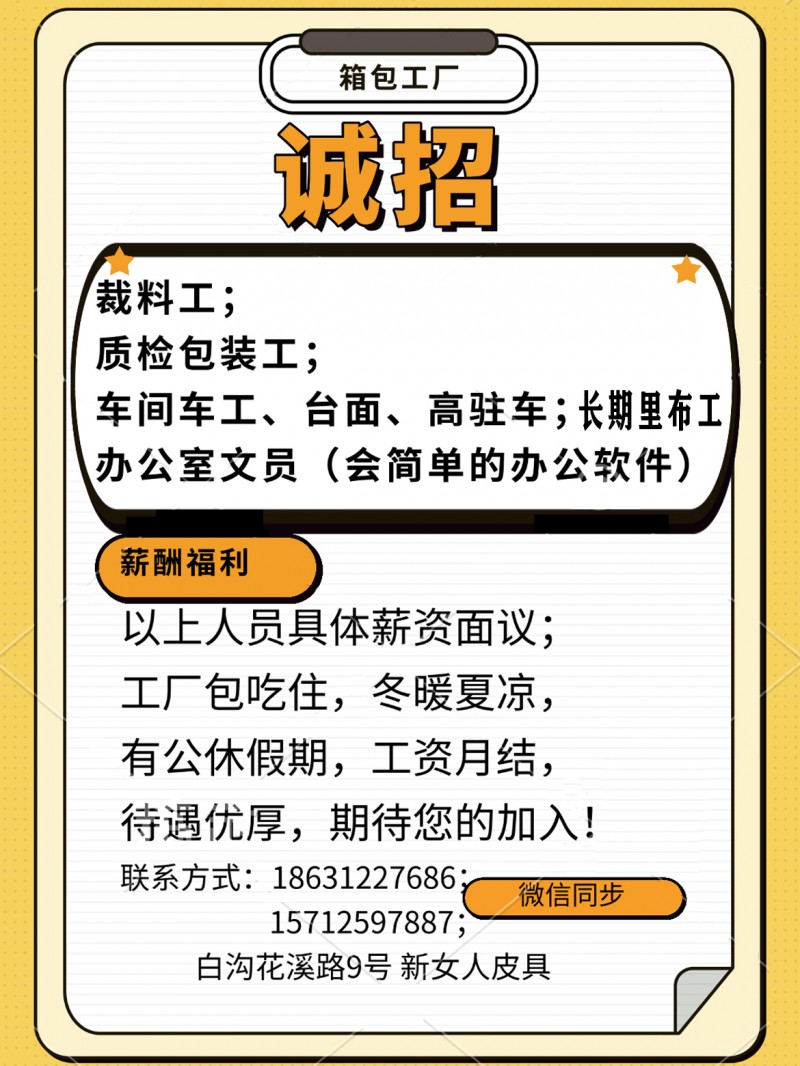 箱包:放加工|接加工|招供货商招聘求职:箱包行业招聘|其他行业招聘|玩具纸箱招聘|招聘小时工|餐饮住宿招聘|个人求职|上门服务房产:房屋出租|二手房买卖